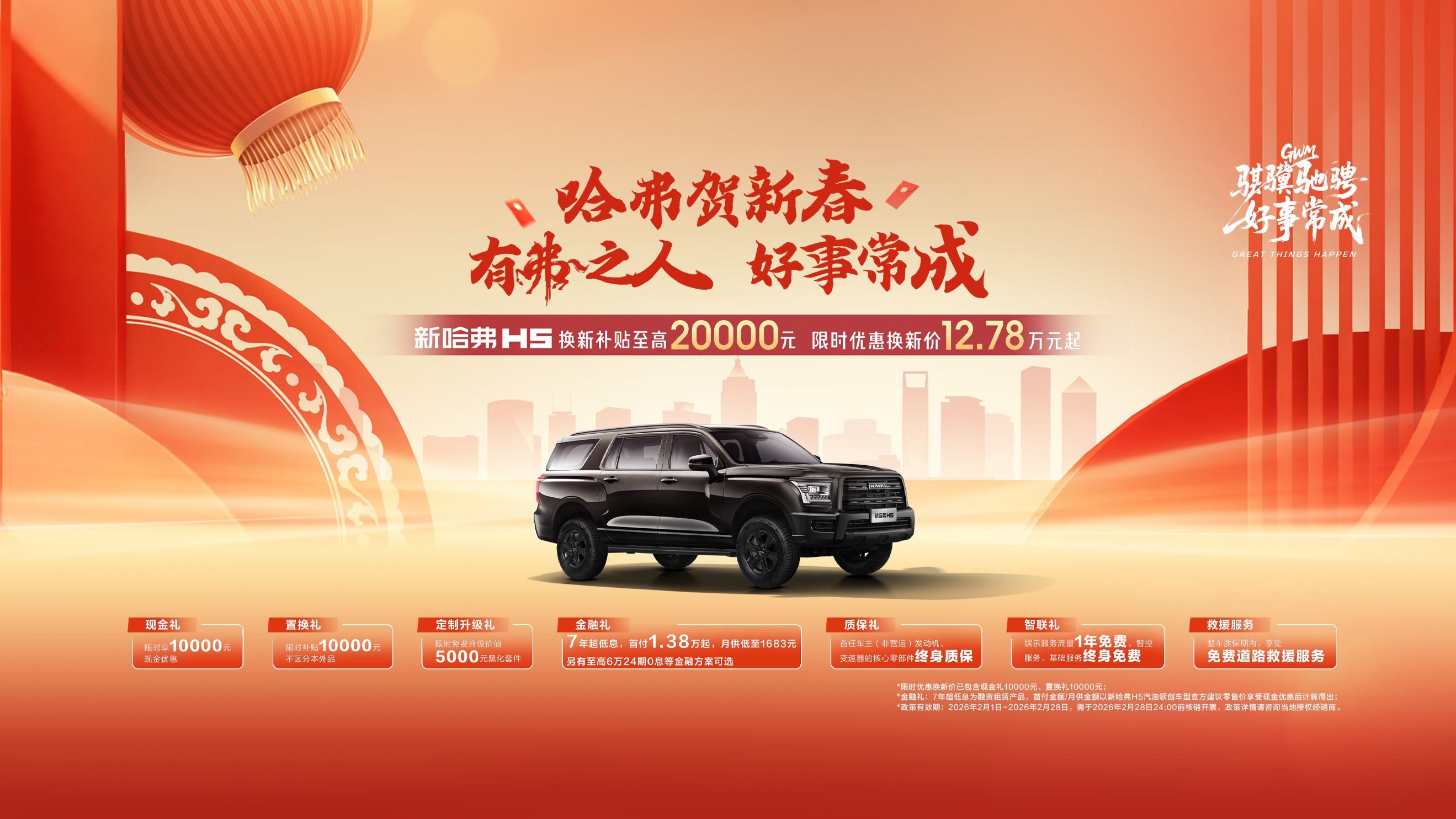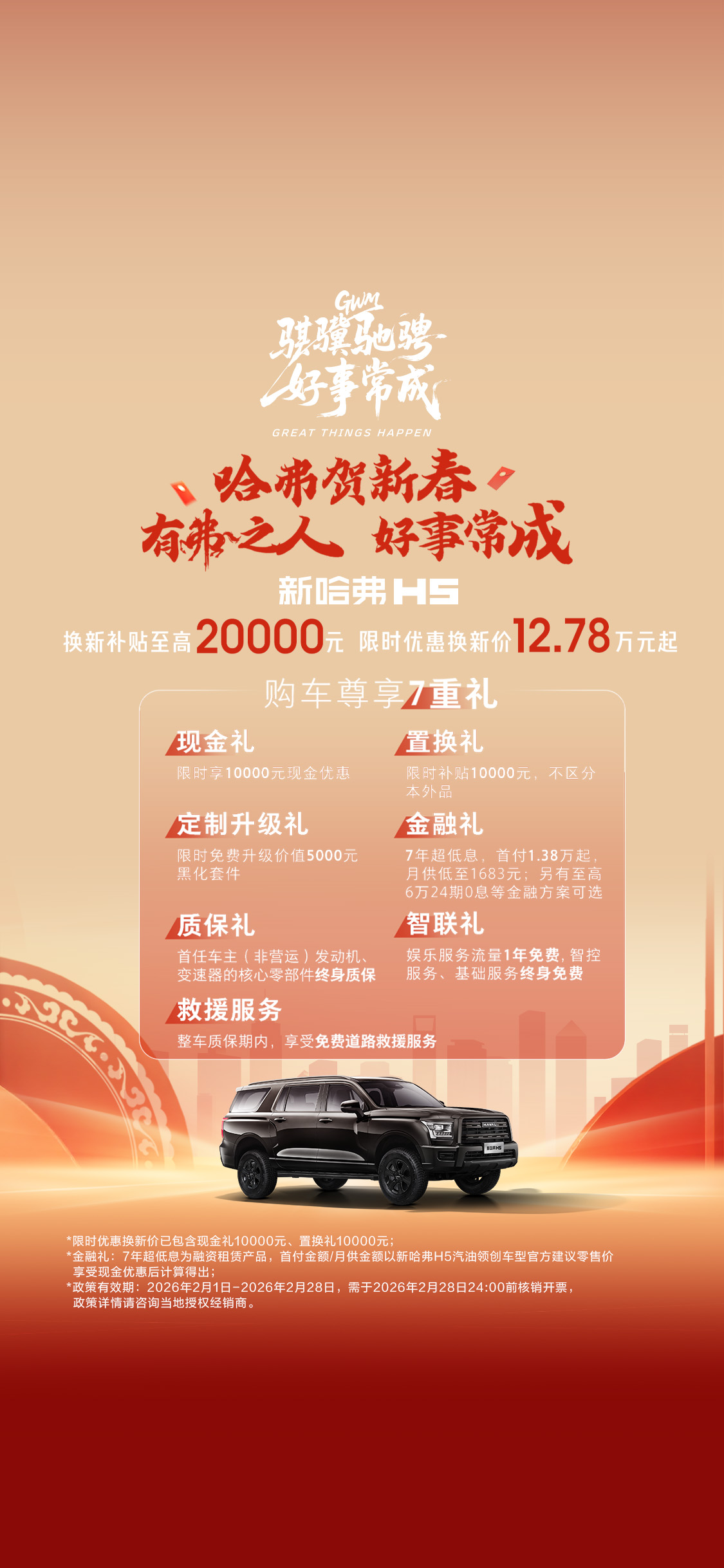 ① 置换礼:本品包含长城集团下属所有车型,外品仅含乘用车及皮卡车,其他类商用车、货车等不享受;